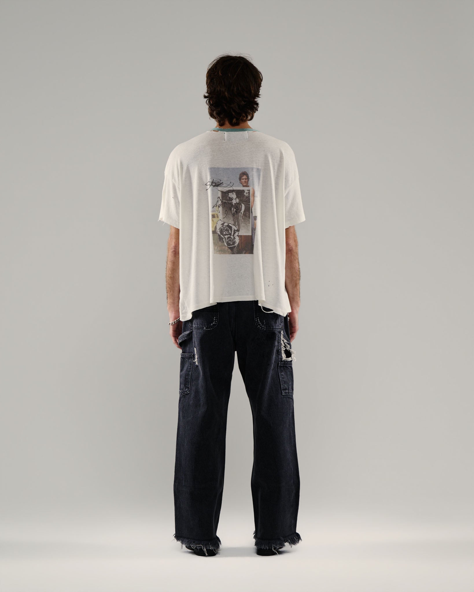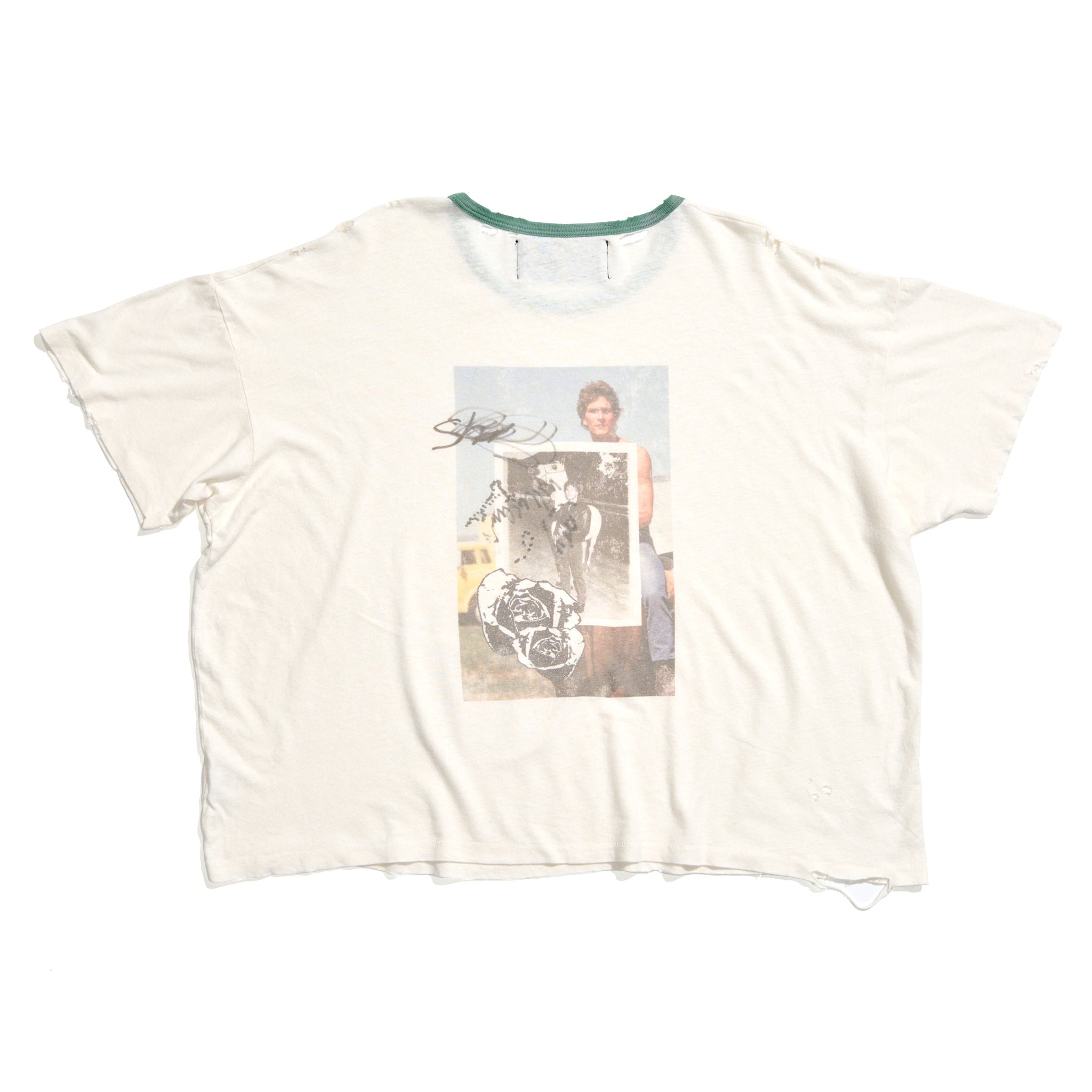 - Areas of hand distressing at neck, hem, and body