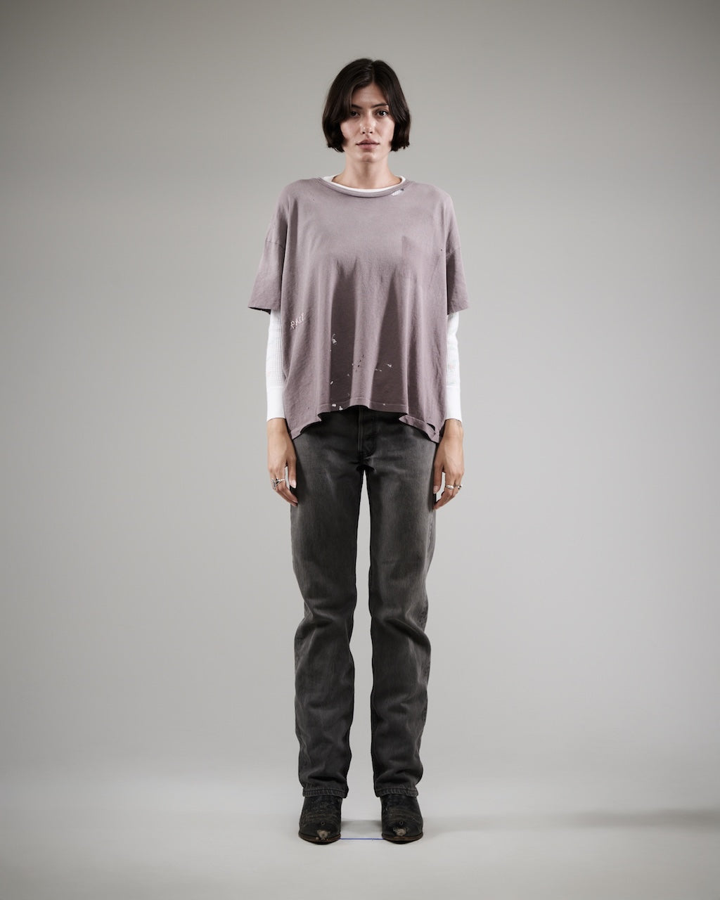 - Heavy stone wash process w/ sun faded detailing and ghost chest pocket