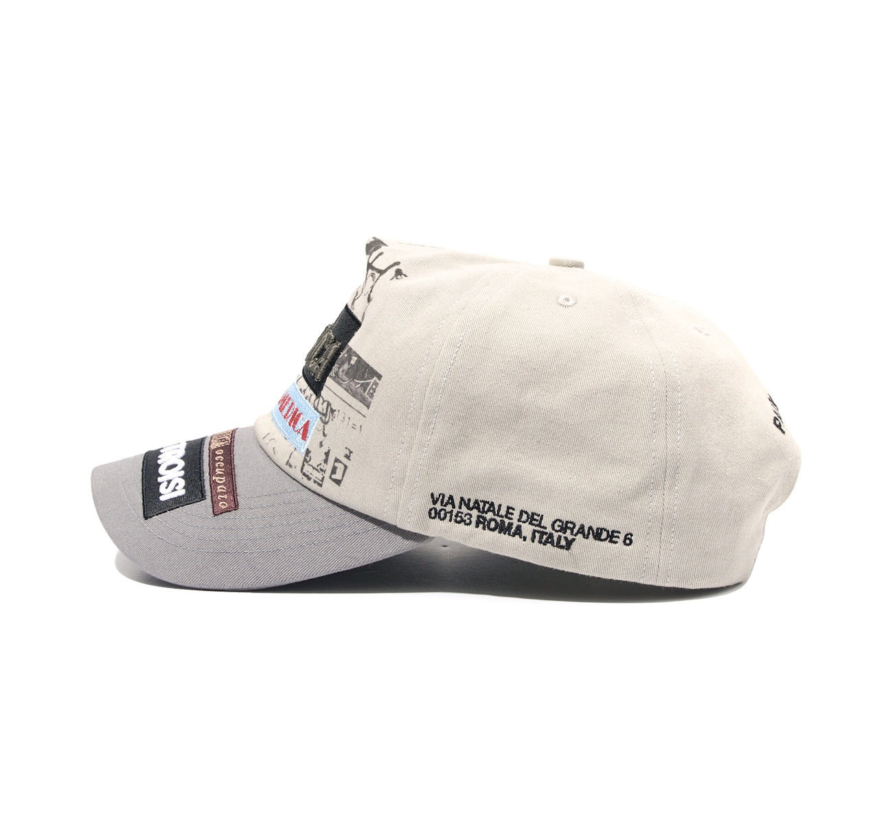 - Variety of embroidery and print techniques at front, back, side, and brim