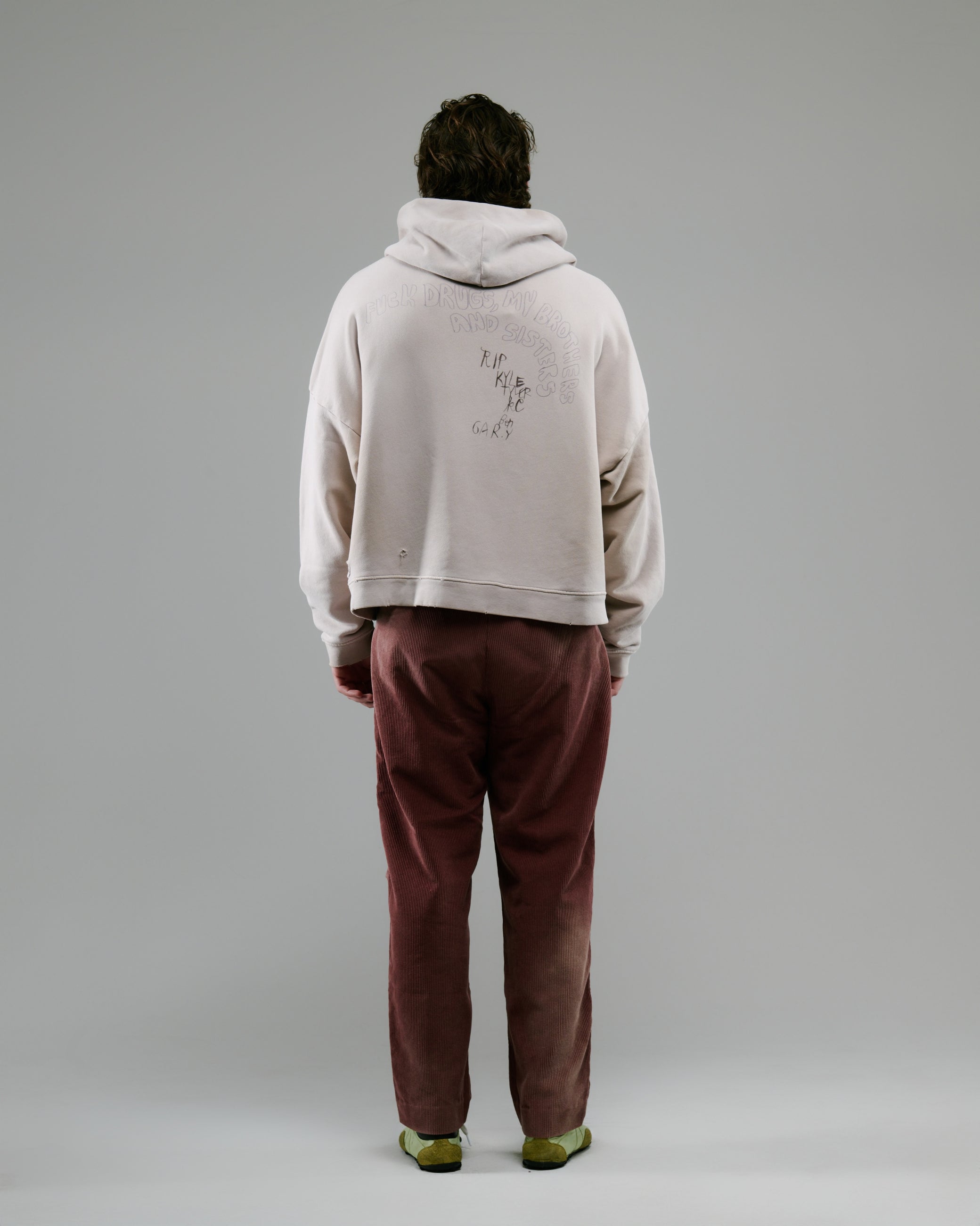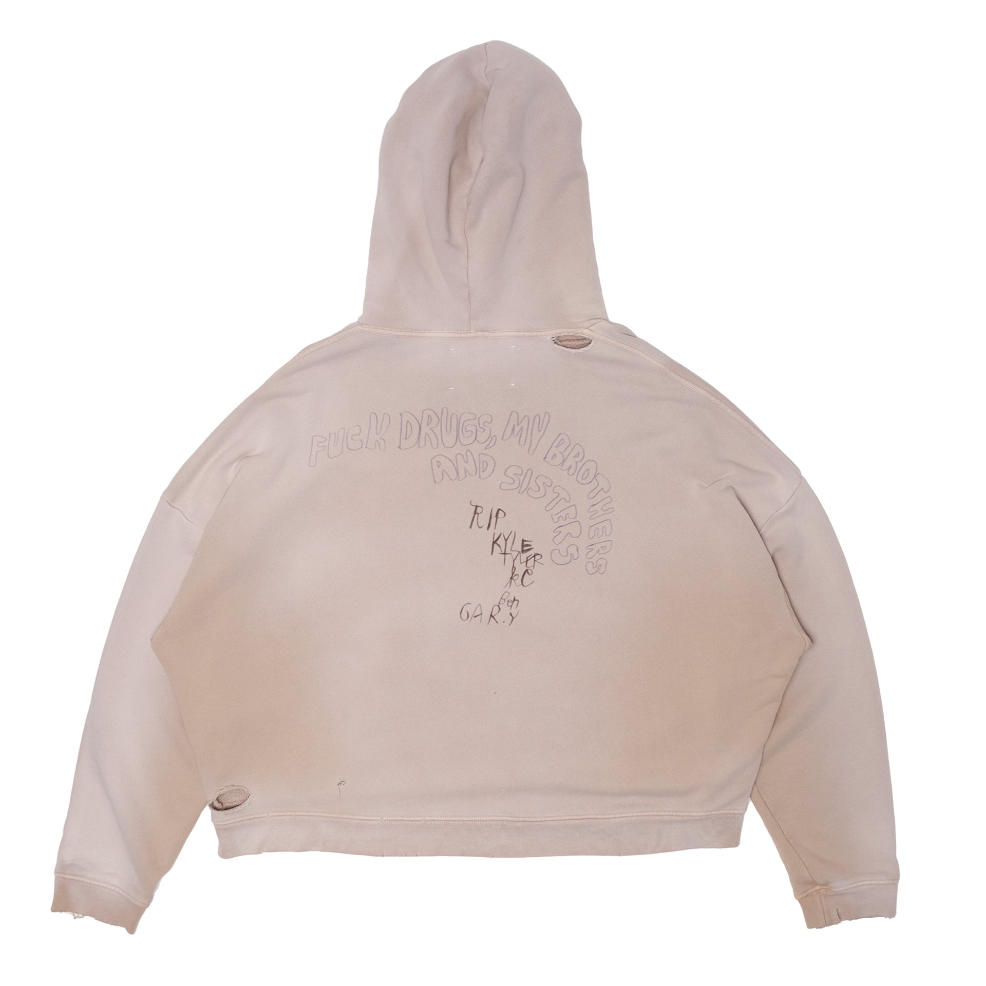 - Areas of hand distressing at cuffs, hem, body, and hood