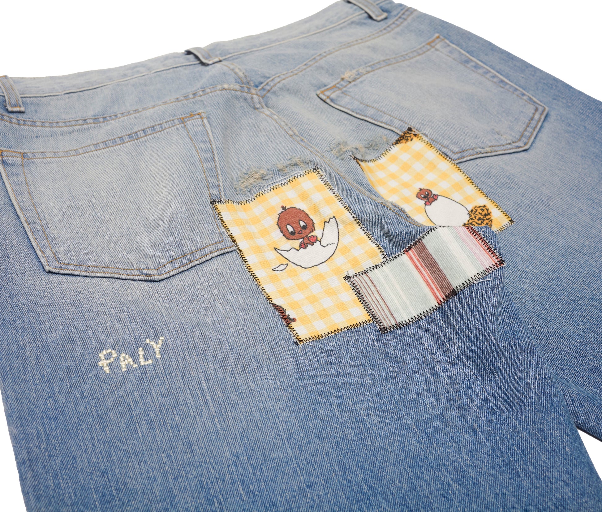 - Printed and authentically distressed artwork with faux bead embroideries throughout