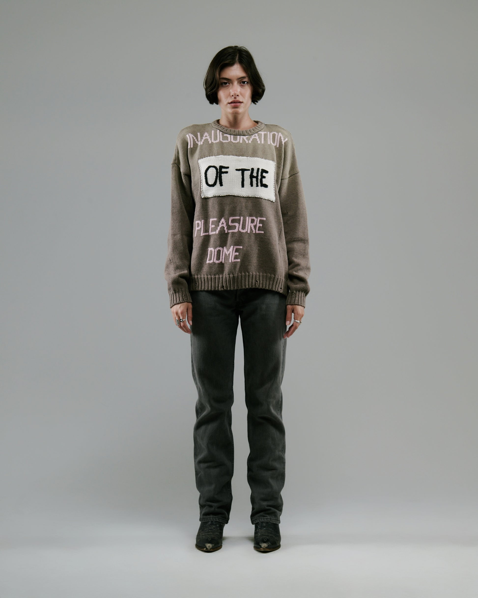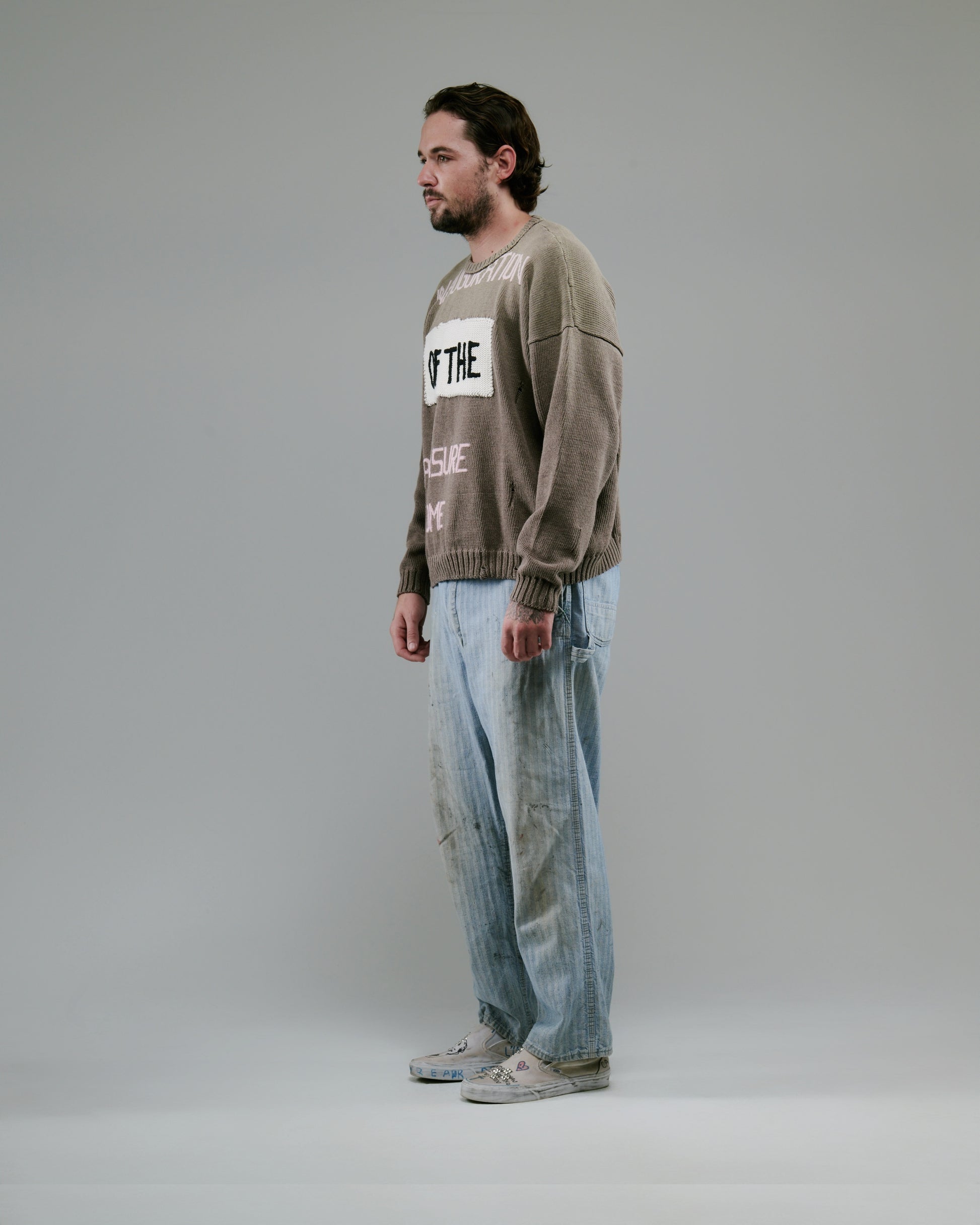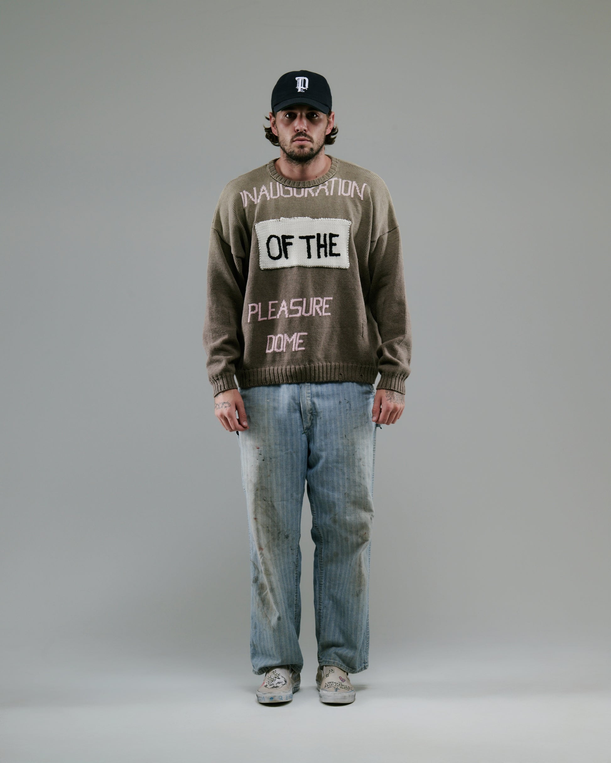 - Intarsia front graphic w/ 5g patch featuring hand embroidery