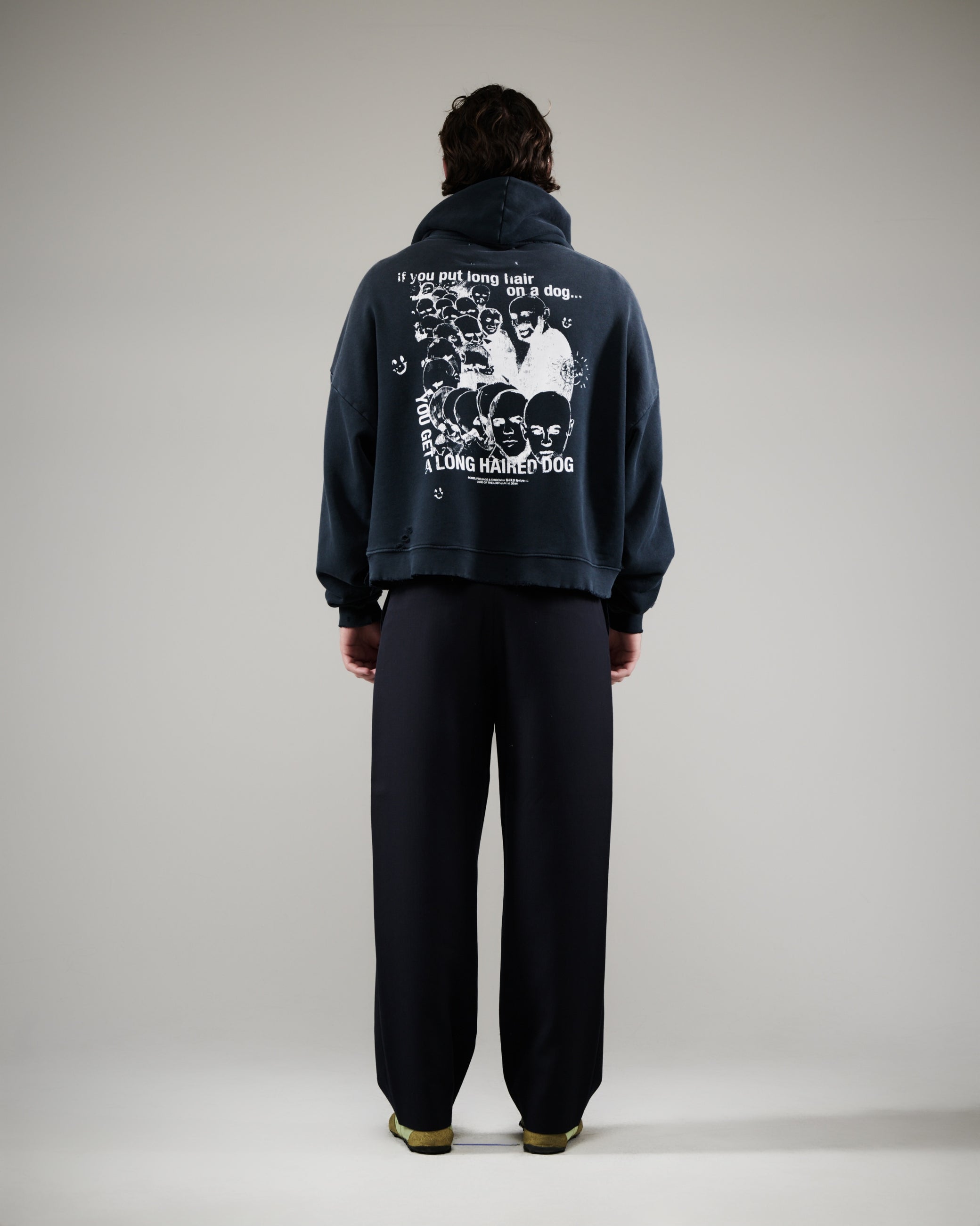- Areas of hand distressing at cuffs, hem, body, and hood
